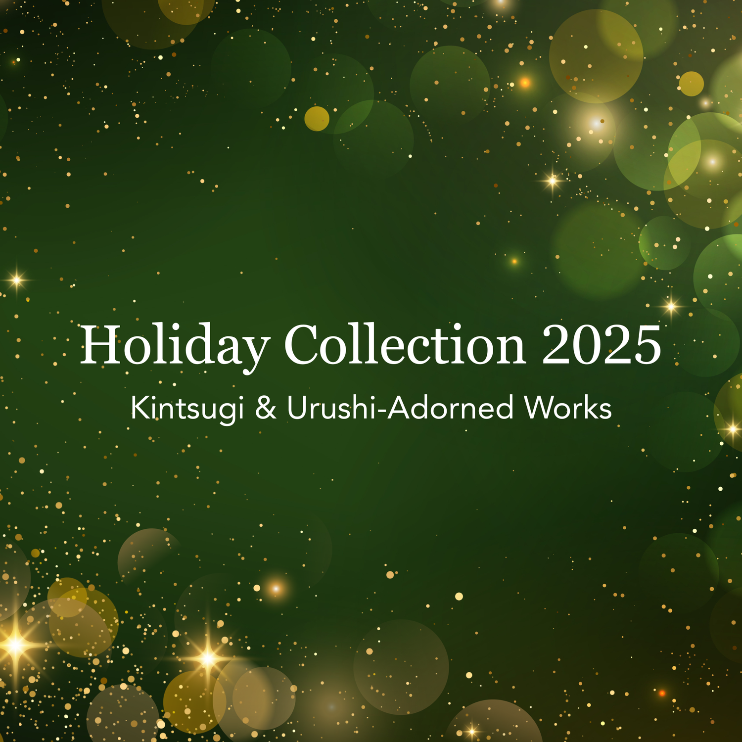 Kintsugi restored and artfully lacquer-adorned by urushi experts, using ethically sourced vessels and natural materials, finished with traditional 24K gold for a meaningful holiday gift.